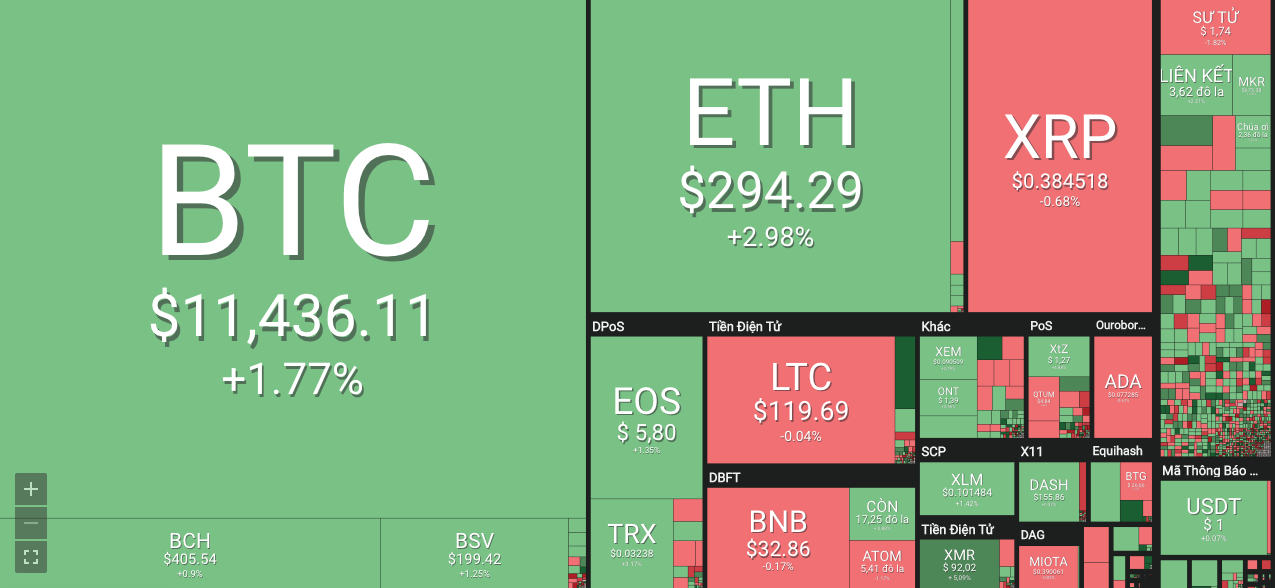 Giá bitcoin hôm nay 6/7 ổn định ở mốc 11k.