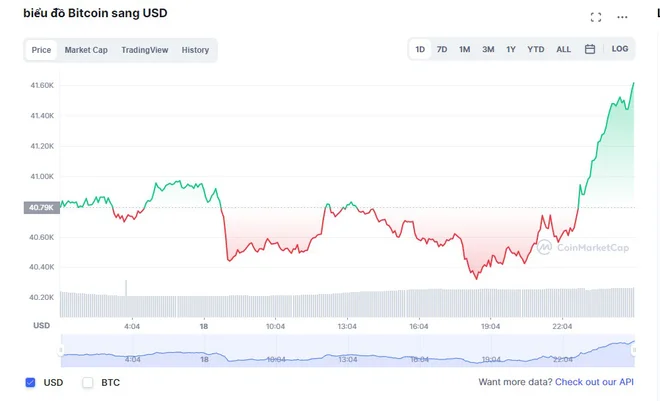 Theo dữ liệu từ CoinMarketCap, giá Bitcoin bắt đầu tăng mạnh vào rạng sáng ngày 19/3. Đồng tiền số hiện được giao dịch ở mức 41.720 USD, cao nhất trong vòng gần 10 ngày qua.