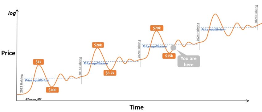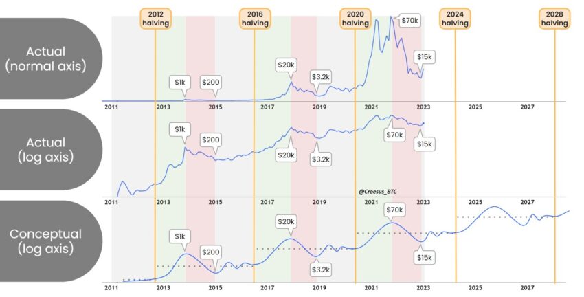 Jesse Myers nói thêm rằng hầu hết mọi người đều bỏ lỡ đáy. Đó là vào tháng 11/2022 khi thị trường tiền điện tử rơi xuống mức thấp nhất trong 4 năm. Hơn nữa, hiện tại chúng ta vẫn ở dưới mức ‘cân bằng giá’. Dựa trên những tác động xung quanh Bitcoin halving đã được chứng minh trong 3 chu kỳ chính vừa qua. Một thị trường tăng giá đã theo sau mỗi sự kiện halving và lịch sử dường như lặp lại một lần nữa. “Đây là kết quả của một cú sốc nguồn cung làm đảo lộn trạng thái cân bằng giá cung/cầu của Bitcoin.”