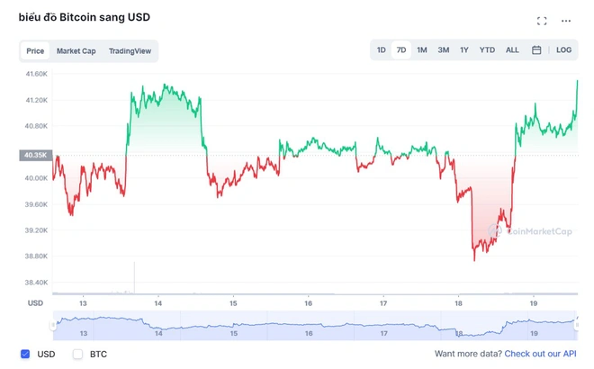 Theo dữ liệu từ CoinMarketCap, giá Bitcoin tiếp tục “đi tàu lượn” và bật tăng lên trên 41.500 USD. Trước đó, mức thấp nhất đối với khung 24 giờ của đồng tiền số là 38.723 USD.