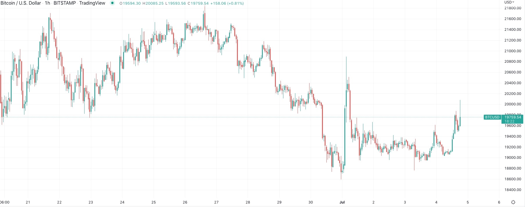 Giá Bitcoin (BTC) đã tăng lên mức 20.000 USD lần đầu tiên sau năm ngày vào ngày 4 tháng 7 khi kỳ nghỉ Lễ Độc lập của Hoa Kỳ mang lại một số mức tăng bất ngờ.