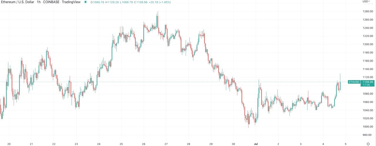 Altcoin trong khi đó đã tận dụng tối đa sự tăng đột biến của Bitcoin, với Ether (ETH) tăng hơn 6% để vượt qua 1.100 USD.