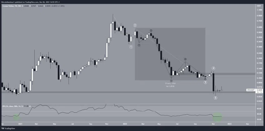 Số lượng sóng cho thấy giá Cronos (CRO) có thể giảm xuống mức hỗ trợ quan trọng