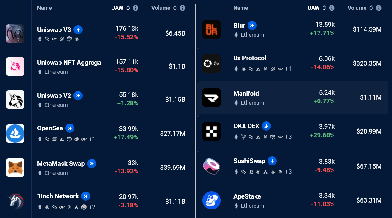 Số lượng địa chỉ đang hoạt động tương tác với các ứng dụng phi tập trung (DApps) cũng đang sụt giảm. Trong 30 ngày qua, 12 DApp hàng đầu chạy trên mạng Ethereum đã giảm 11% số lượng địa chỉ hoạt động, có thể phản ánh sự không hài lòng của nhà đầu tư với chi phí giao dịch cao.