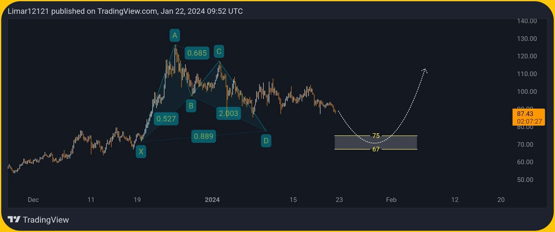 Cặp SOLUSDT có vẻ hơi giảm giá ở đây do mất xu hướng từ tháng 10. Nến đóng cửa dưới mức hỗ trợ hiện tại này và khu vực 77 bắt đầu dần hiện hữu.