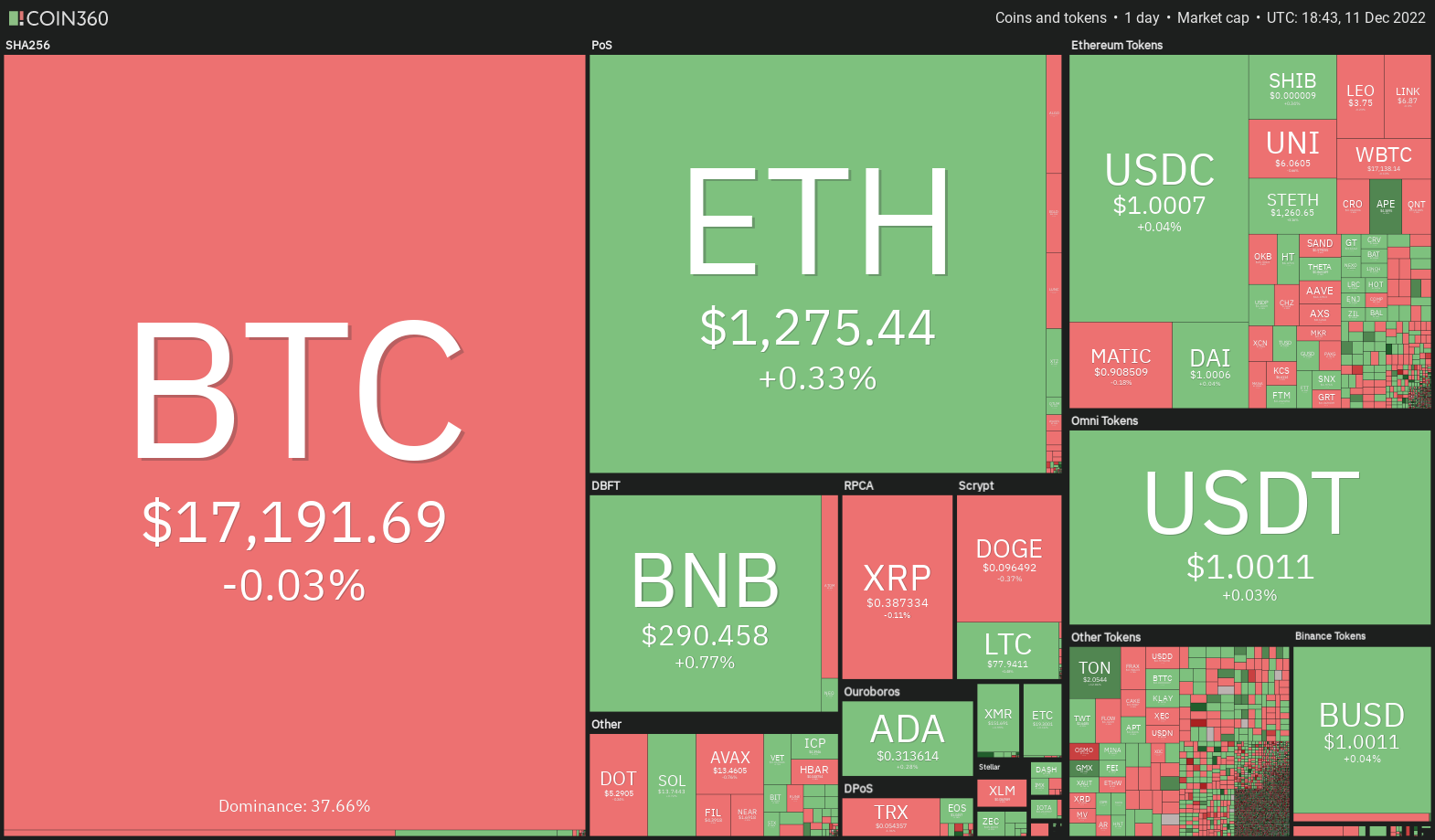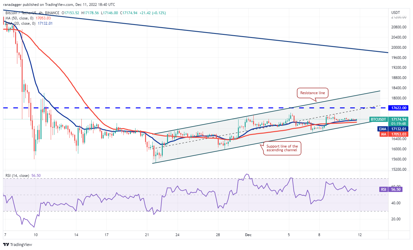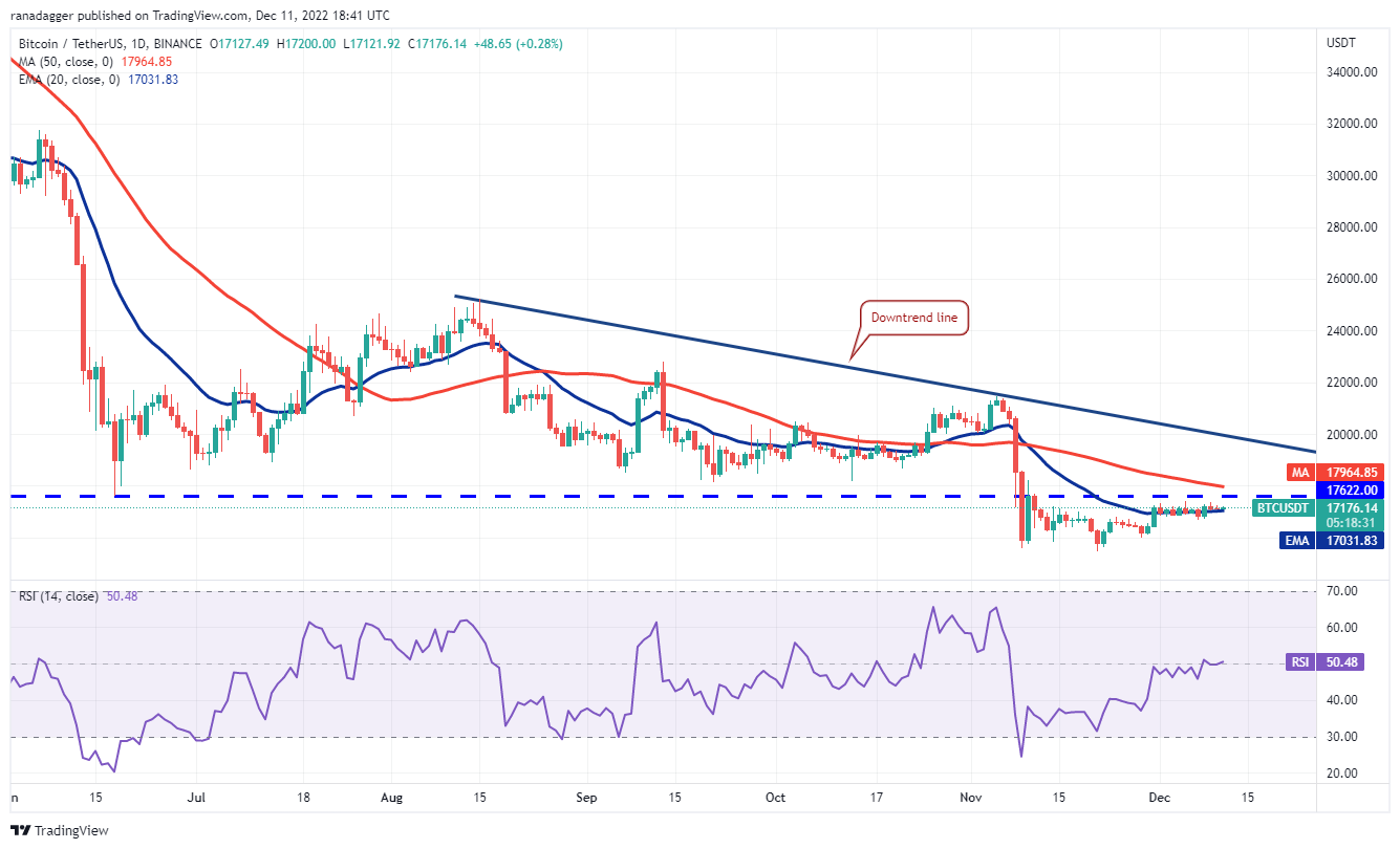 Bitcoin đã dao động quanh mức trung bình động hàm mũ 20 ngày (EMA) là 17.031 USD trong vài ngày qua. Đường EMA 20 ngày đi ngang và chỉ số sức mạnh tương đối (RSI) gần 50 không mang lại lợi thế rõ ràng cho phe bò hay phe gấu.