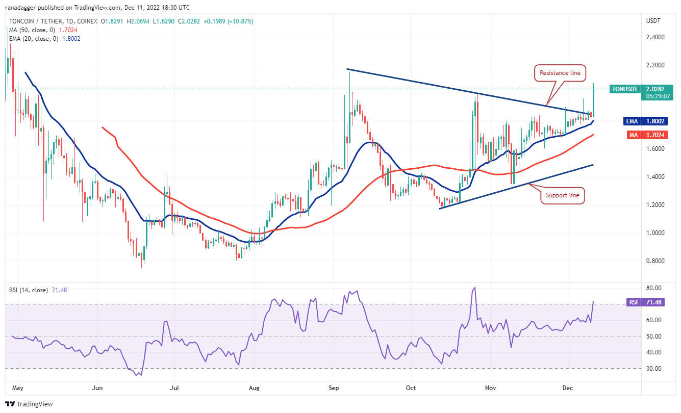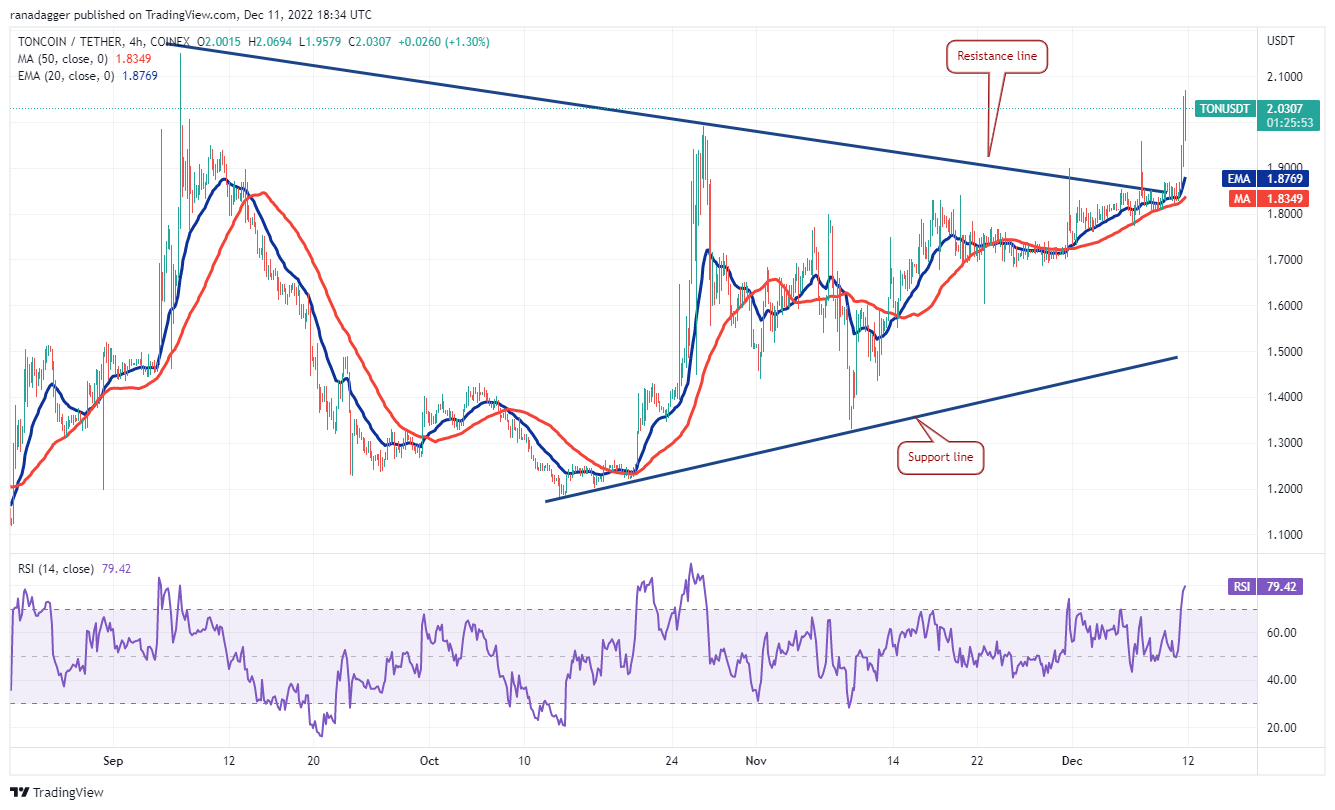 Những người đầu cơ giá lên đã đẩy Toncoin (TON) lên trên ngưỡng kháng cự của tam giác đối xứng vào ngày 11 tháng 12, cho thấy sự không chắc chắn đã được giải quyết có lợi cho người mua. Tam giác đối xứng thường hoạt động như một mô hình tiếp tục, làm tăng khả năng tiếp tục xu hướng tăng.