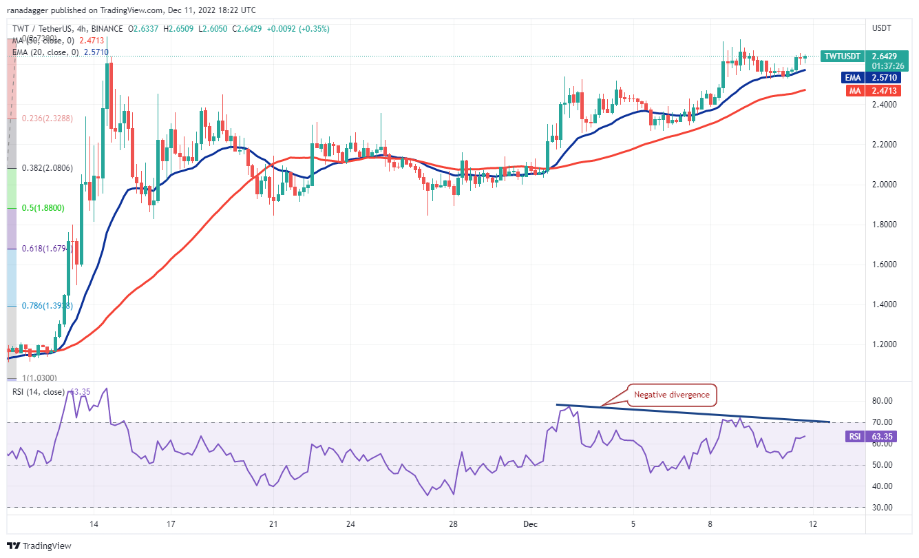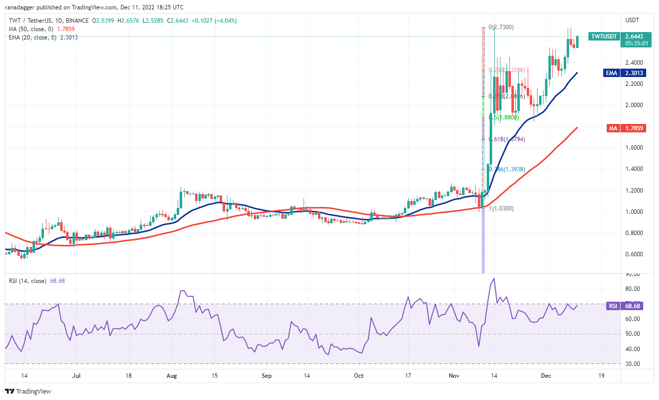 Phe bò sẽ cố gắng đẩy giá lên trên mức kháng cự trên không ở mức 2,73 USD. Nếu họ thành công, cặp TWT/USDT có thể tăng lên mức tâm lý là 3 USD, nơi phe gấu có thể cố gắng ngăn chặn đà tăng.