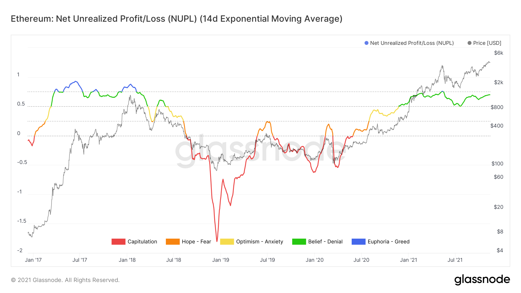 Chưa hết, Net Unrealized Profit/Loss của ETH vẫn tương tự một cách kỳ lạ. Vào năm 2017, giá trị NUPL là khoảng 0,71 vào ngày này, trong khi giá trị NUPL của ETH, tại thời điểm viết bài, là 0,69.