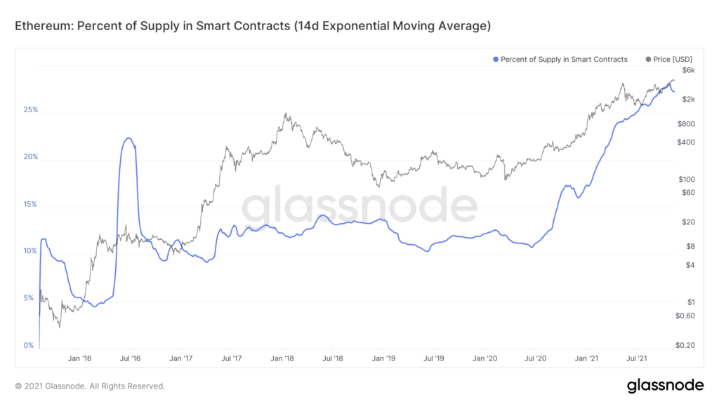 Cũng cần hiểu rằng nguồn cung Ethereum kém thanh khoản hiện tại đã tăng lên khá nhiều. DeFi, ETH 2.0, hợp đồng thông minh đã lấy đi rất nhiều ETH ra khỏi lưu thông. Tất cả những điều này sẽ nâng cao giá trị lâu dài của nó.