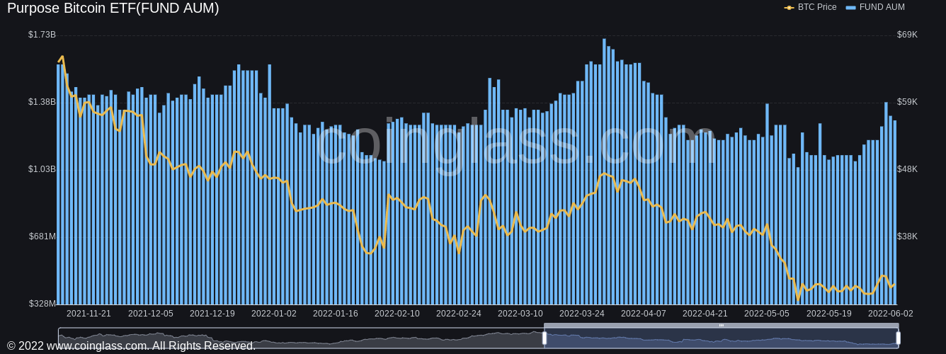 Purpose ETF Bitcoin, ETF Bitcoin giá giao ngay đầu tiên ra mắt trên thế giới, có tài sản trị giá 1,294 tỷ USD đang được quản lý vào ngày 3 tháng 6, dữ liệu từ Coinglass tài nguyên giám sát trên chuỗi xác nhận.