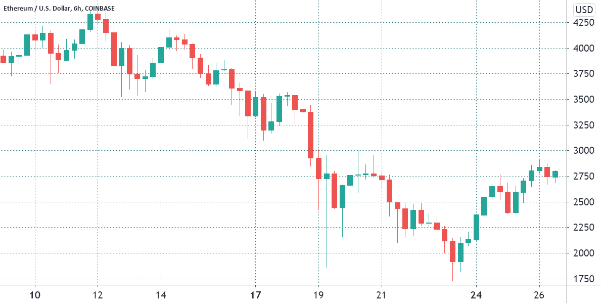 Sự sụt giảm không ngừng bắt đầu sau khi đạt mức cao nhất mọi thời đại 4.380 đô la vào ngày 12 tháng 5, mất 11 ngày và giá cuối cùng chạm đáy ở mức 1.730 đô la. Tuy nhiên, mức giá thấp không kéo dài và Ether nhanh chóng thiết lập lại hỗ trợ ở mức $2,400. Lãi suất mở đối với các hợp đồng tương lai đã giảm 54% xuống còn 5,2 tỷ đô la do đòn bẩy Long được thanh lý và những người Short chốt lời.