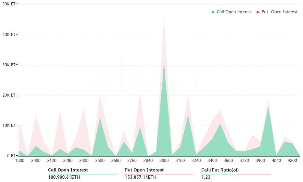 Trong khi đó, các tùy chọn bán từ trung lập đến giảm ở mức 3.000 đô la trở lên với tổng số 52.700 ETH, tương đương 145 triệu đô la tiền lãi mở. Điều này dẫn đến một lực cân bằng khi hết hạn quyền chọn.
