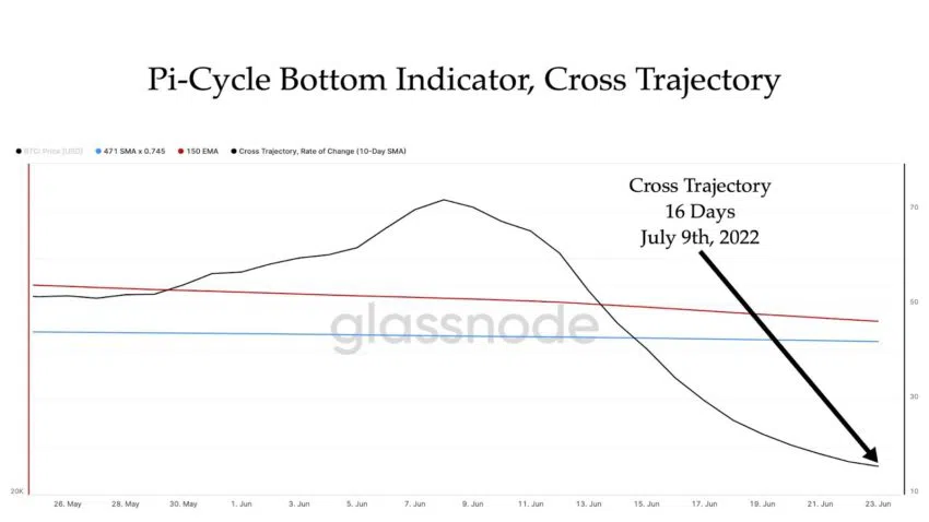 Nhà phân tích thị trường tiền điện tử @TheRealPlanC đã tweet dự đoán của riêng mình về ngày giao thời và đạt mức đáy giả định cho Bitcoin. Dựa trên quỹ đạo chuyển động của hai đường cong, ông ước tính rằng giao điểm sẽ xảy ra vào ngày 9 tháng 7 năm 2022.
