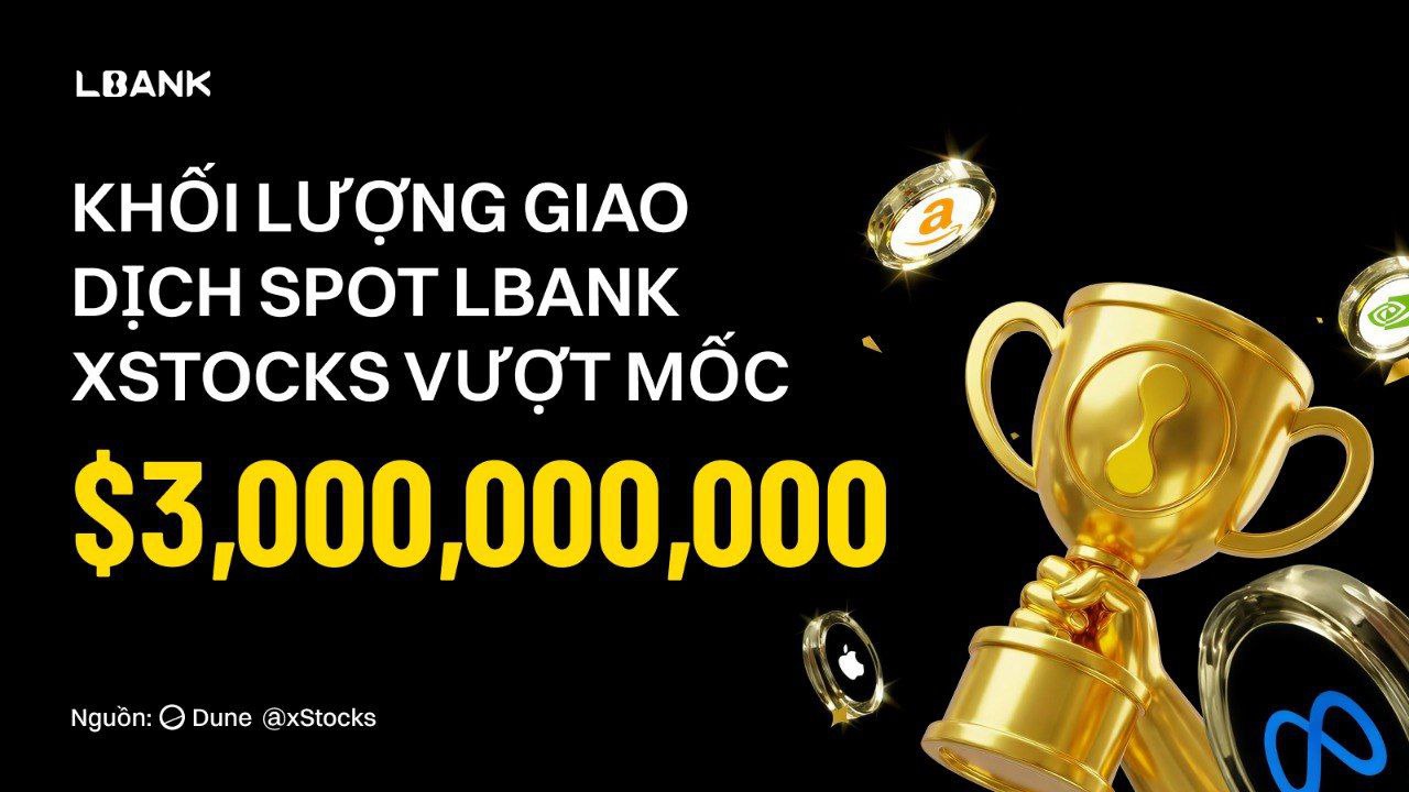Singapore, ngày 16 tháng 1 năm 2026 — LBank, một sàn giao dịch tiền mã hóa toàn cầu hàng đầu, đã vượt mốc 3 tỷ USD khối lượng giao dịch spot tích lũy của xStock, chiếm khoảng 30% thị phần CEX, theo dữ liệu chính thức từ xStock trên Dune Analytics. Cột mốc này khẳng định vị thế dẫn đầu bền vững của LBank trong lĩnh vực cổ phiếu được mã hóa đang tăng trưởng nhanh chóng, đồng thời phản ánh xu hướng chấp nhận ngày càng rộng rãi của cổ phiếu mã hóa trên toàn cầu.