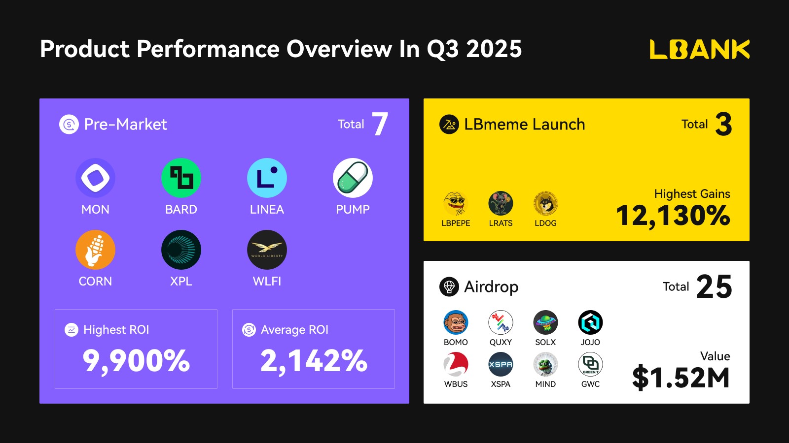 Quý này cũng chứng kiến những tiến bộ đáng kể trong phát triển thương hiệu và quan hệ đối tác chiến lược. LBank hợp tác với WLFI, trở thành một trong những sàn giao dịch đầu tiên tích hợp Chương Trình Trung Thành USD1, trong khi LBank Labs mở rộng dấu chân toàn cầu thông qua các diễn đàn blockchain quốc tế và Lễ Hội 1001 Seoul, nhận được sự công nhận truyền thông đáng chú ý. Về mặt bảo mật, LBank đã chặn các tổn thất tiềm năng vượt quá 300 triệu USD và duy trì kỷ lục 10 năm không có sự cố bảo mật, củng cố niềm tin của người dùng và chứng minh khả năng quản lý rủi ro hàng đầu ngành.