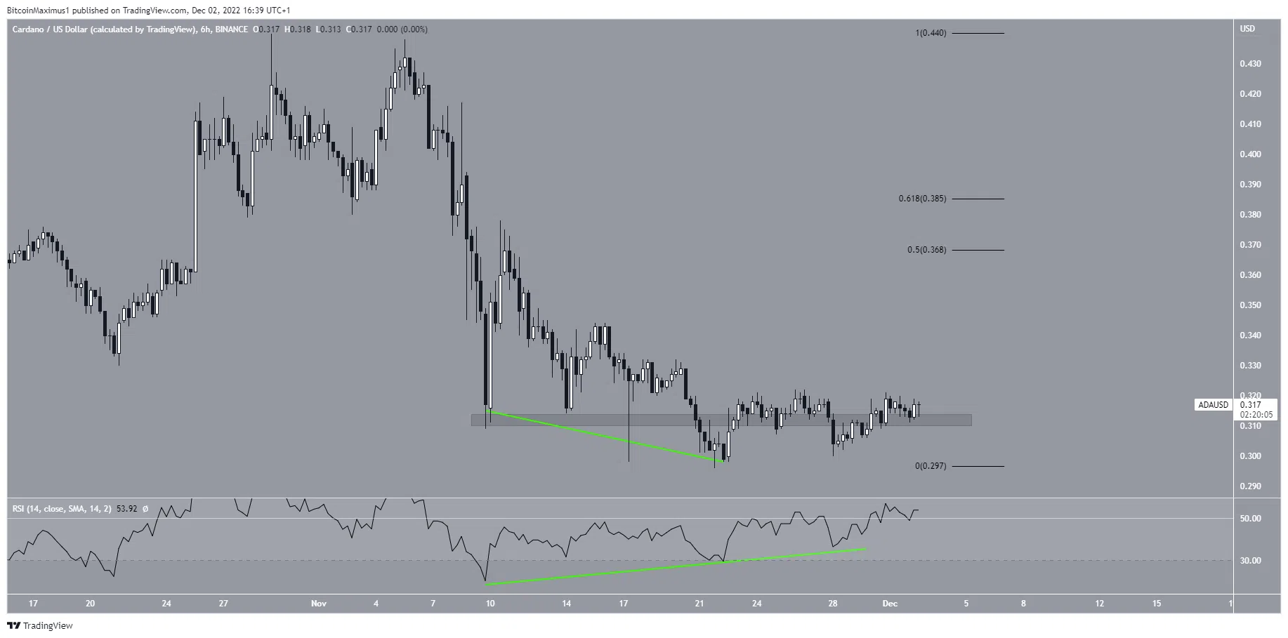 Phân tích kỹ thuật từ khung thời gian 6 giờ cho thấy ADA đã lấy lại vùng hỗ trợ tại 0.31 USD. Giá đã bật lên khỏi đường này trong 24 giờ qua. Bên cạnh hành động giá, chỉ báo RSI 6 giờ cũng cho thấy xu hướng tăng vì nó đã tạo ra sự phân kỳ tăng (đường màu xanh lá cây).