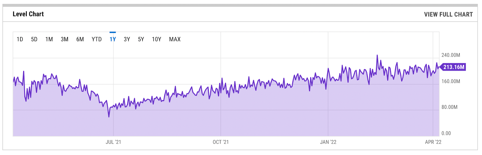 Tốc độ khai thác Bitcoin đã tăng đáng kể trong vài năm qua khi tỷ lệ băm của tài sản tiền điện tử đạt mức cao nhất mọi thời đại mới là 248,11 exahashes mỗi giây (EH/s) vào ngày 18 tháng 2. Hiện tại, tỷ lệ băm của mạng là 213,16 EH/s.