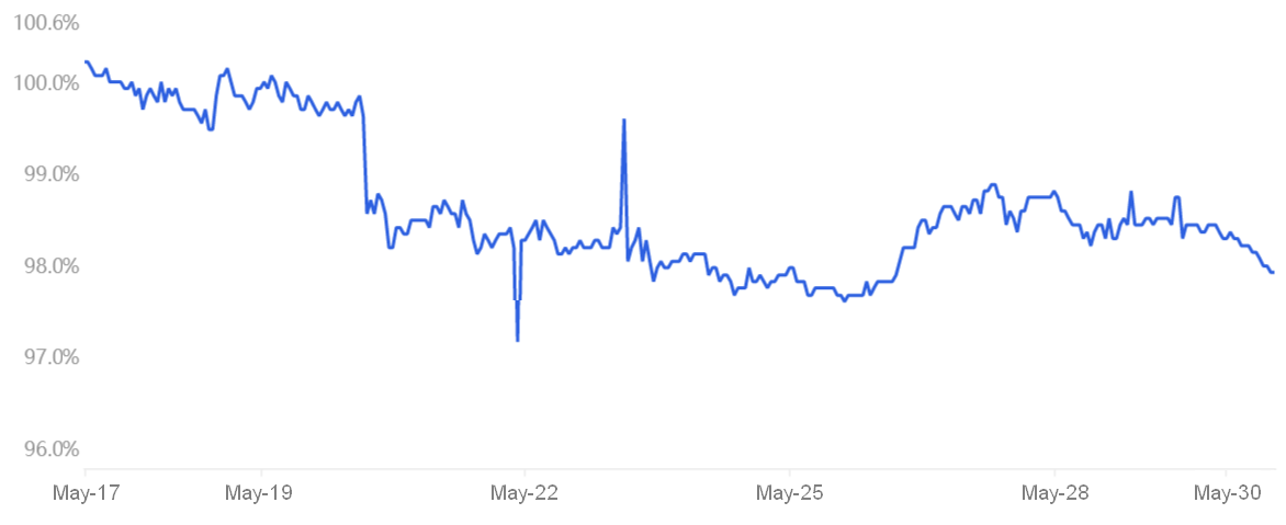 Trong khoảng thời gian từ ngày 23 đến ngày 30 tháng 5, phí bảo hiểm Tether tính theo CNY đã giảm trung bình 2%, báo hiệu sự thiếu hụt nhu cầu bán lẻ. Quan trọng hơn, cuộc biểu tình 4% của vốn hóa thị trường tiền điện tử vào ngày 30 tháng 5 đã không thay đổi tâm lý của các nhà đầu tư.