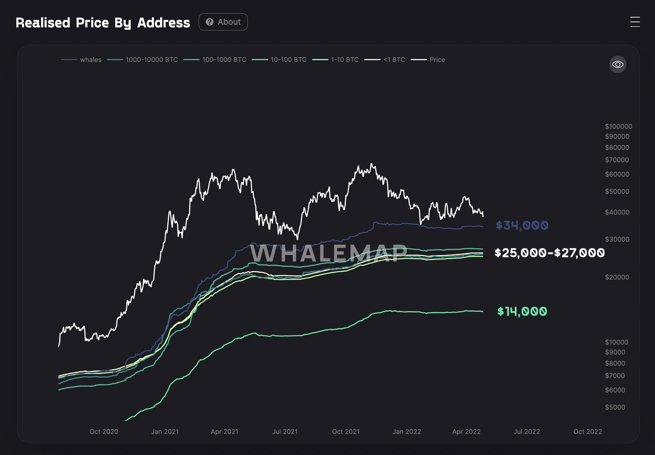 Whalemap đã phát hành một bản đồ về giá thực tế của Bitcoin được sắp xếp theo kích thước ví để làm cơ sở cho mục tiêu giá tiềm năng của nó. Giá thực tế hiển thị ở mức giá mà mỗi Bitcoin di chuyển lần cuối, làm cho 25,000 USD – 27,000 USD trở thành một điểm trao đổi chính cho người mua và người bán.