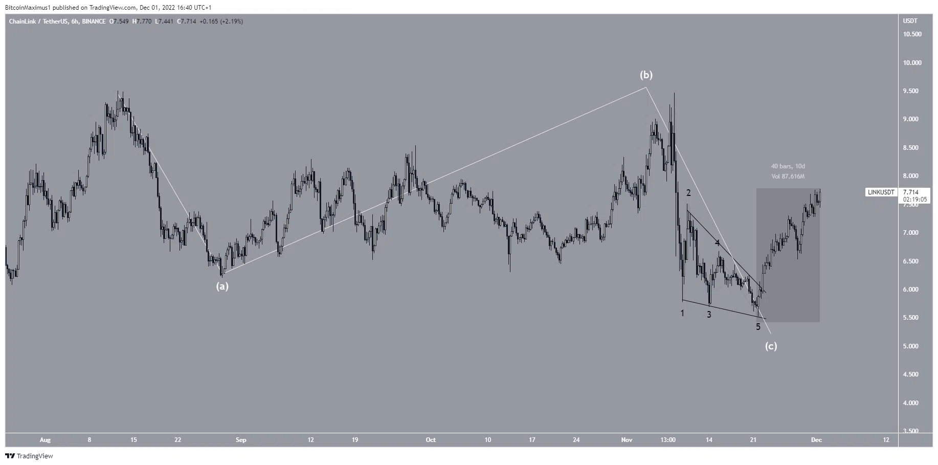 Số lượng sóng cho thấy xu hướng rất có thể là tăng. Nó gợi ý rằng cấu trúc điều chỉnh A-B-C trước đó (màu trắng) đã kết thúc bằng một đường chéo (màu đen). Nếu đúng, giá Chainlink đã bắt đầu một chuyển động tăng mới sau đó (được đánh dấu).