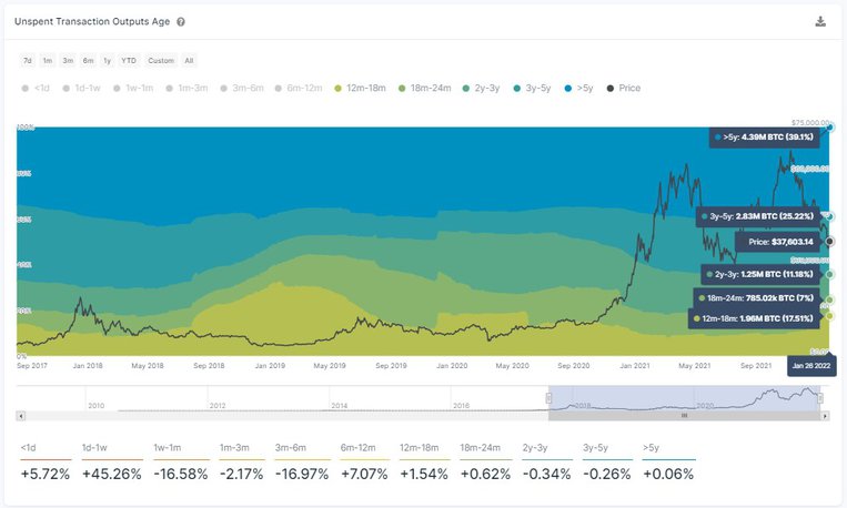 Ngay cả khi giá Bitcoin bị sụt giảm kéo dài kể từ tháng 11, chỉ trong 30 ngày qua, số lượng người bán đã tăng 3,02%. Tuyên bố trên càng được khẳng định lại khi phân tích tỷ lệ phần trăm Bitcoin bất động.
