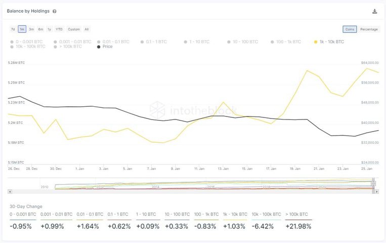 - Các địa chỉ có hơn 1k-10k BTC rõ ràng là những người chơi tổ chức hoặc cá voi trong cách nói của tiền điện tử