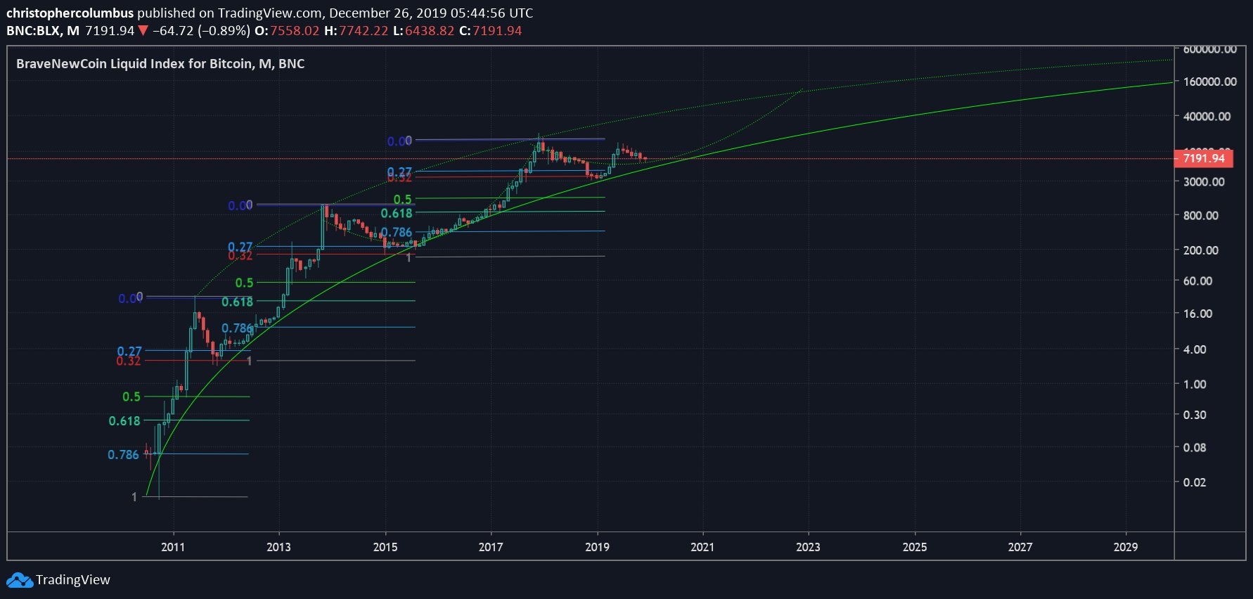Sự tuân thủ của bitcoin với xu hướng giá theo cấp số nhân trong một thời gian dài, điều này cũng khiến nhà phân tích xác định chính xác mức đáy 6.000 đô la.