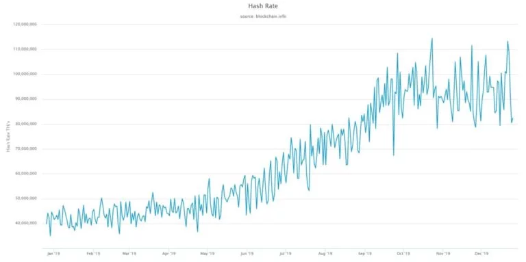 Sự gia tăng nhất quán trong hashrate của bitcoin trong suốt năm 2019 sau năm 2018 khó khăn cho thấy sự tin tưởng của họ vào quỹ đạo dài hạn của BTC.