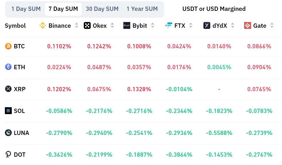 Mặt khác, tỷ lệ tài trợ cho hợp đồng tương lai vĩnh viễn trong 7 ngày của altcoin là -0,30%. Tỷ lệ này tương đương 1,2% mỗi tháng và cho thấy nhu cầu cao hơn từ short (người bán).