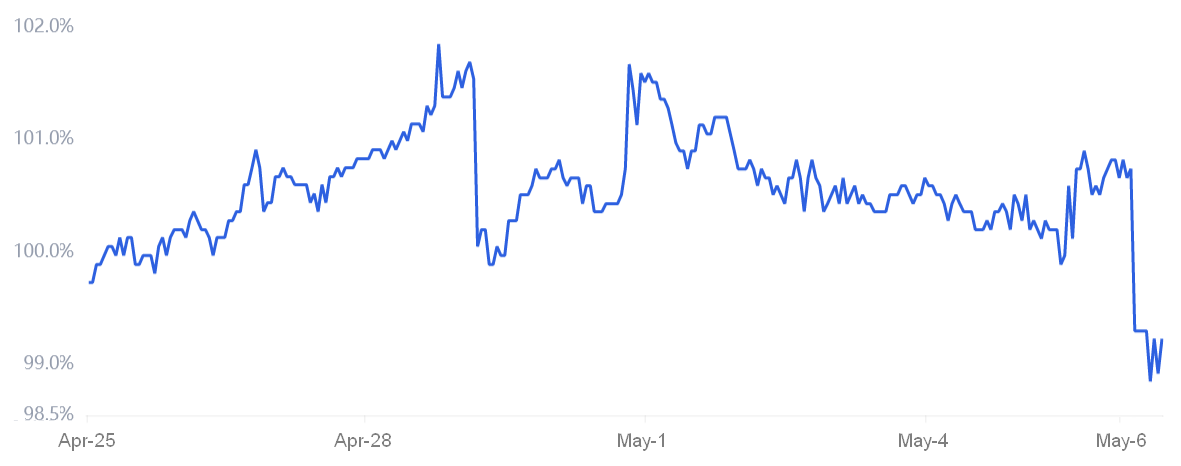 Giá cao nhất của OKX Tether đạt mức cao nhất là 1,7% vào ngày 30 tháng 4, cho thấy một số nhu cầu dư thừa từ bán lẻ. Tuy nhiên, chỉ số này được hoàn nguyên về phí bảo hiểm 0% trong năm ngày tới.