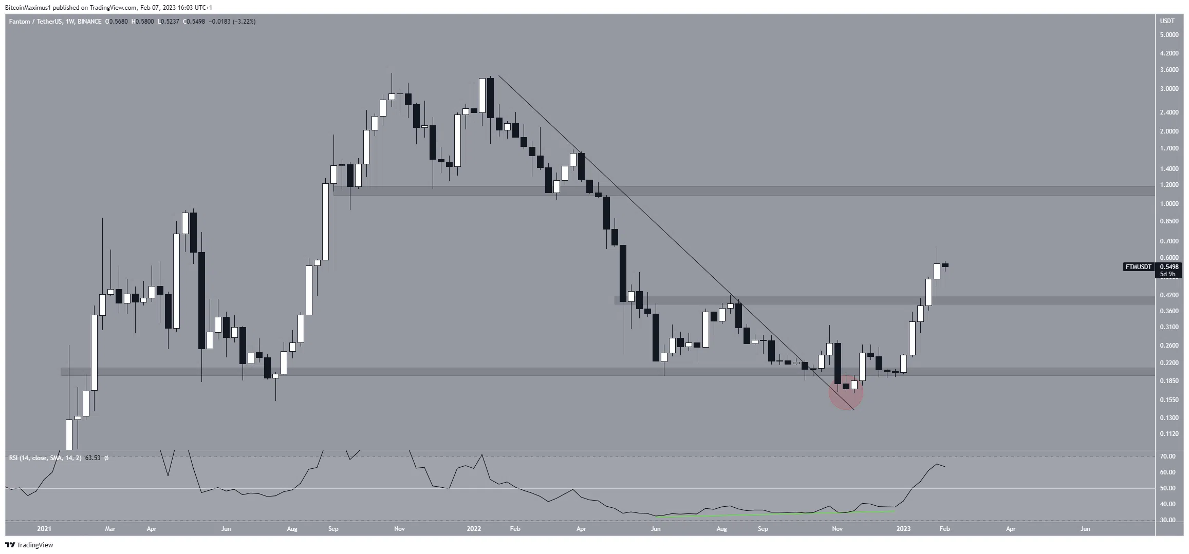 Giá FTM sau đó đã thoát ra khỏi đường kháng cự giảm dần, xác nhận nó là hỗ trợ. Kể từ đó, giá đã đạt mức tăng khổng lồ 270%, dẫn đến mức cao 0.61 USD. Theo đó, giá Fantom có thể tăng lên mức kháng cự 1.20 USD. Các phân tích kỹ thuật cùng chỉ báo RSI cũng hỗ trợ điều này.