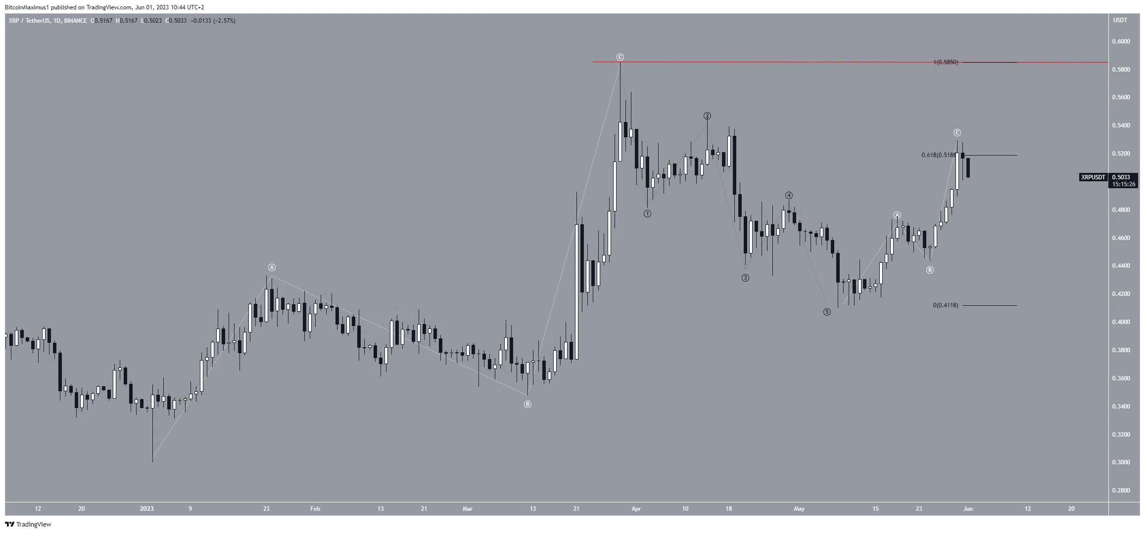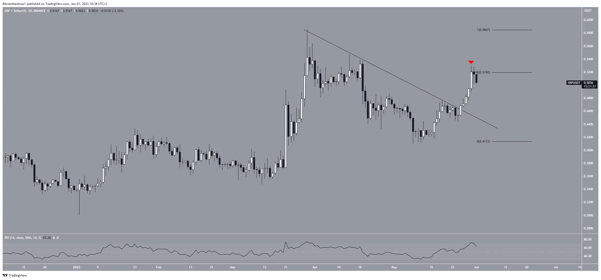 Tuy nhiên, XRP đã phá vỡ đường này vào ngày 26/5, xác nhận rằng quá trình điều chỉnh đã hoàn tất. Đột phá dẫn đến mức tạo đỉnh 0.53 USD vào ngày 30/5.