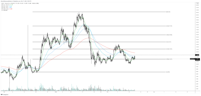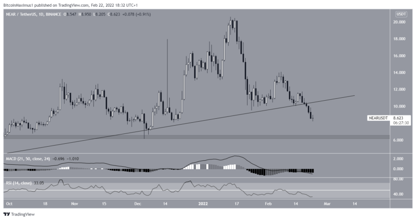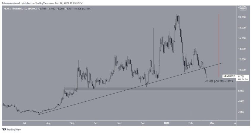Giá NEAR đã giảm kể từ mức đỉnh lịch sử tại 20.54 USD vào ngày 14 tháng 1. Vào ngày 19 tháng 2, giá đã bứt phá xuống dưới đường hỗ trợ tăng dần mà đã có từ tháng 7 năm 2021.