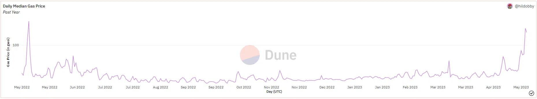 Như một công cụ theo dõi cũng cho thấy phí gas trên Ethereum đã có xu hướng tăng kể từ cuối tháng Tư. Phí gas trung bình thậm chí đã nhanh chóng vượt qua mức 240 gwei vào thứ Sáu, mức cao nhất kể từ tháng 5 năm ngoái.