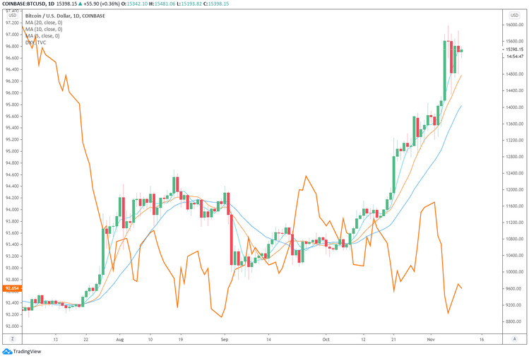 Giá của Bitcoin thường tương quan nghịch với chỉ số đô la Mỹ. Giống như vàng, khi đồng đô la giảm, BTC có xu hướng tăng.