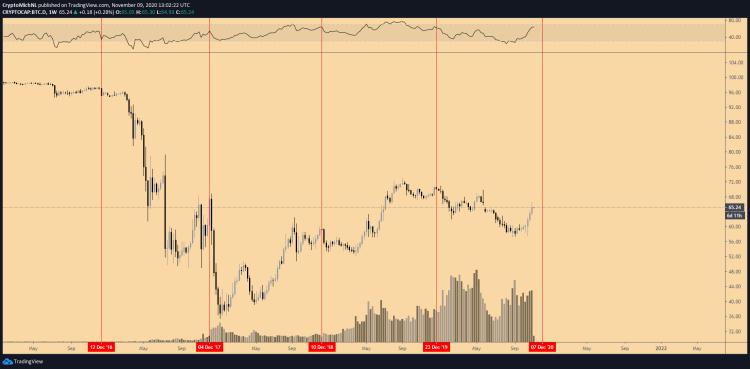 Nếu sự điều chỉnh xảy ra, mức hàng tuần trong khoảng $11.600 đến $12.000 nên được xem là vùng hỗ trợ tiềm năng. Sự điều chỉnh như vậy có nghĩa là giá Bitcoin sẽ giảm khoảng 30%. Việc điều chỉnh 30% là khá bình thường, vì điều này đã xảy ra một vài lần trong chu kỳ tăng trước đó vào năm 2017.