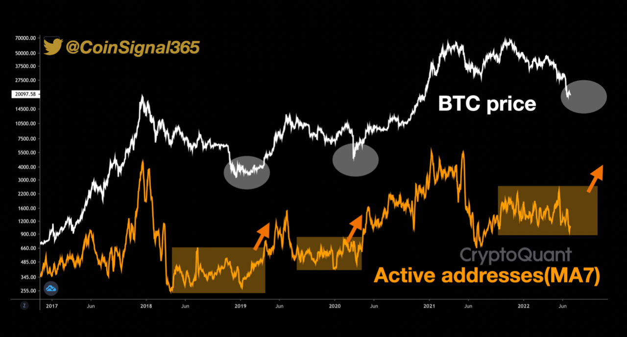 - Khoảng thời gian từ ATH 69,000 USD đến nay, lượng địa chỉ hoạt động của Bitcoin đã không còn đột biến nữa. Nó phản ánh nhà đầu tư mới không còn liên tục gia nhập thị trường và giao dịch nữa.