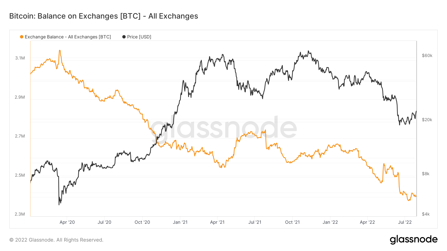 Theo điều kiện BTC, con số hiện tại là 2,4 triệu BTC so với 3,15 triệu BTC vào tháng 3 năm 2020. Con số thấp nhất kể từ tháng 7 năm 2018.