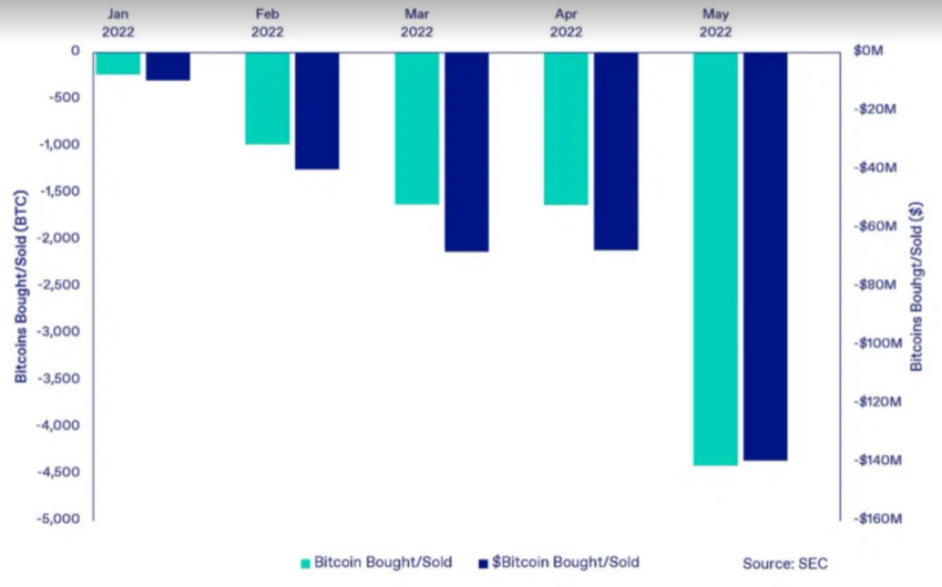 Vào tháng 5 năm 2022, các công ty khai thác công khai đã bán 4.411 BTC. Con số này cao hơn bốn lần so với mức trung bình trong tháng từ tháng 1 đến tháng 4 năm 2022. Điều này được chứng minh bằng các báo cáo tài chính mà các công ty đại chúng cung cấp cho cơ quan quản lý.