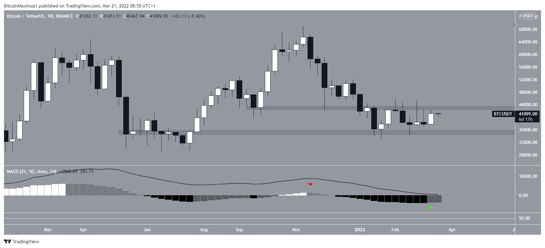 Bitcoin đã tăng trong tuần từ ngày 13 đến 20 tháng 3, tạo ra một cây nến tăng giá và phủ nhận phần lớn các bấc dài phía trên của tuần trước. Giá hiện đang thấp hơn một chút so với vùng kháng cự 43,000 USD, đã có từ đầu năm.