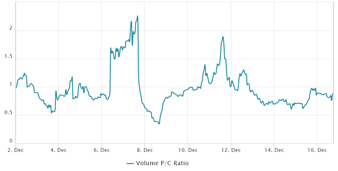 Mặc dù giá Bitcoin không thể phá vỡ ngưỡng kháng cự 18.000 USD vào ngày 14 tháng 12, nhưng không có nhu cầu quá mức đối với việc sử dụng các tùy chọn bảo vệ nhược điểm. Chính xác hơn, chỉ báo này đã ở dưới mức 1,00, nên hơi lạc quan kể từ ngày 12 tháng 12.