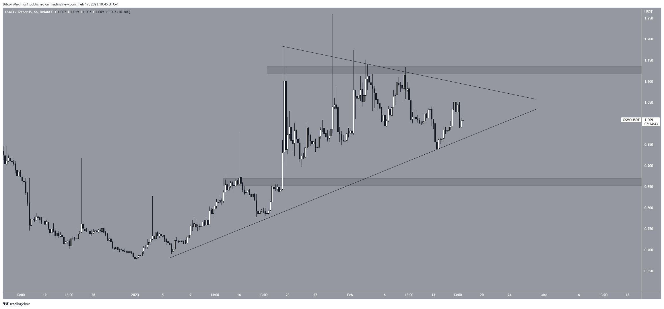 Giá OSMO đã tăng cùng với đường hỗ trợ tăng dần kể từ ngày 6 tháng 1. Chuyển động đi lên đã dẫn đến mức cao 1,26 USD vào ngày 29 tháng 1.