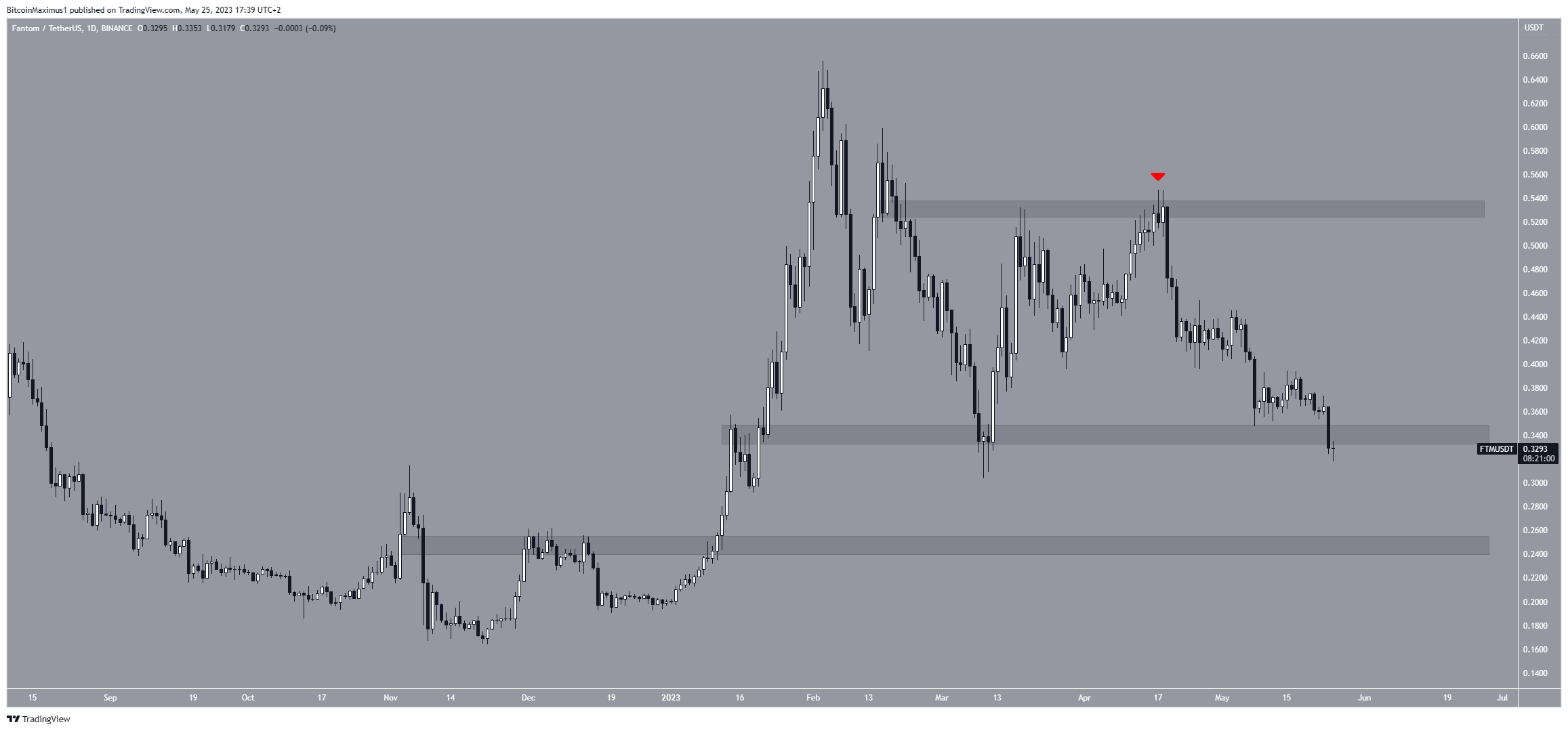 #3. Fantom (FTM) đã giảm dưới vùng hỗ trợ 0.33 USD