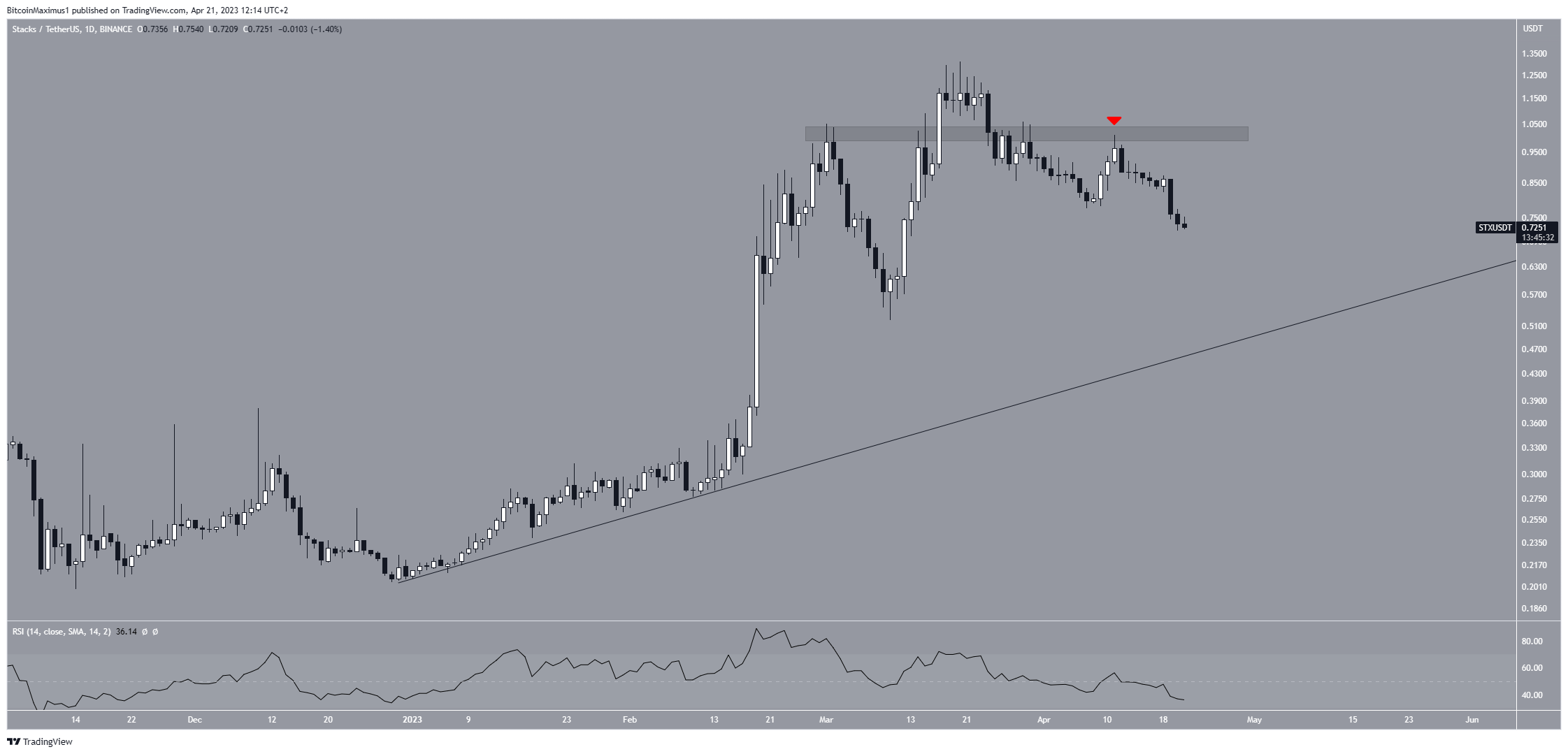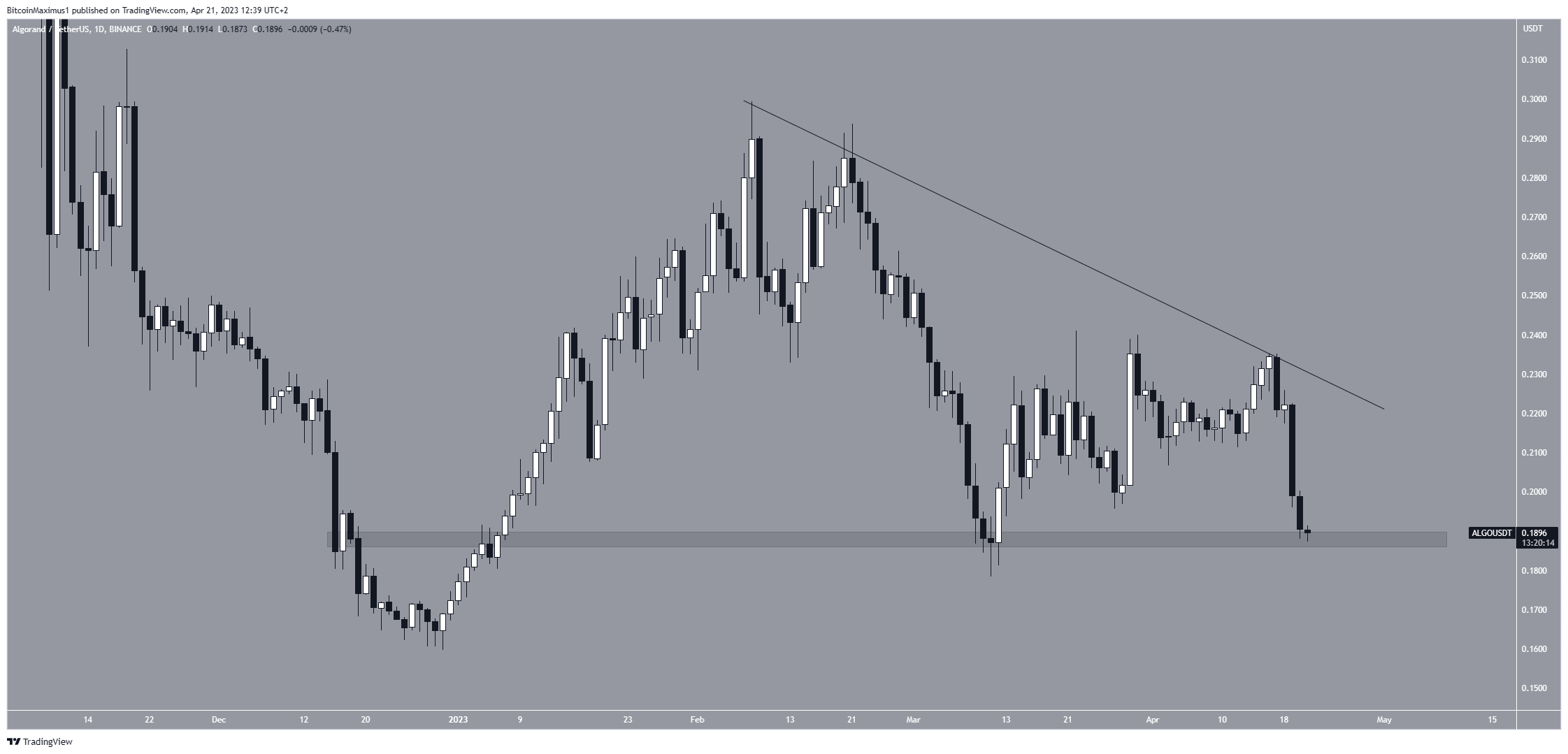 Giá ALGO đã giảm xuống dưới đường kháng cự giảm dần kể từ khi đạt mức cao hàng năm vào ngày 9 tháng 2. Gần đây hơn, đường này đã gây ra sự từ chối vào ngày 17 tháng 4 (biểu tượng màu đỏ).