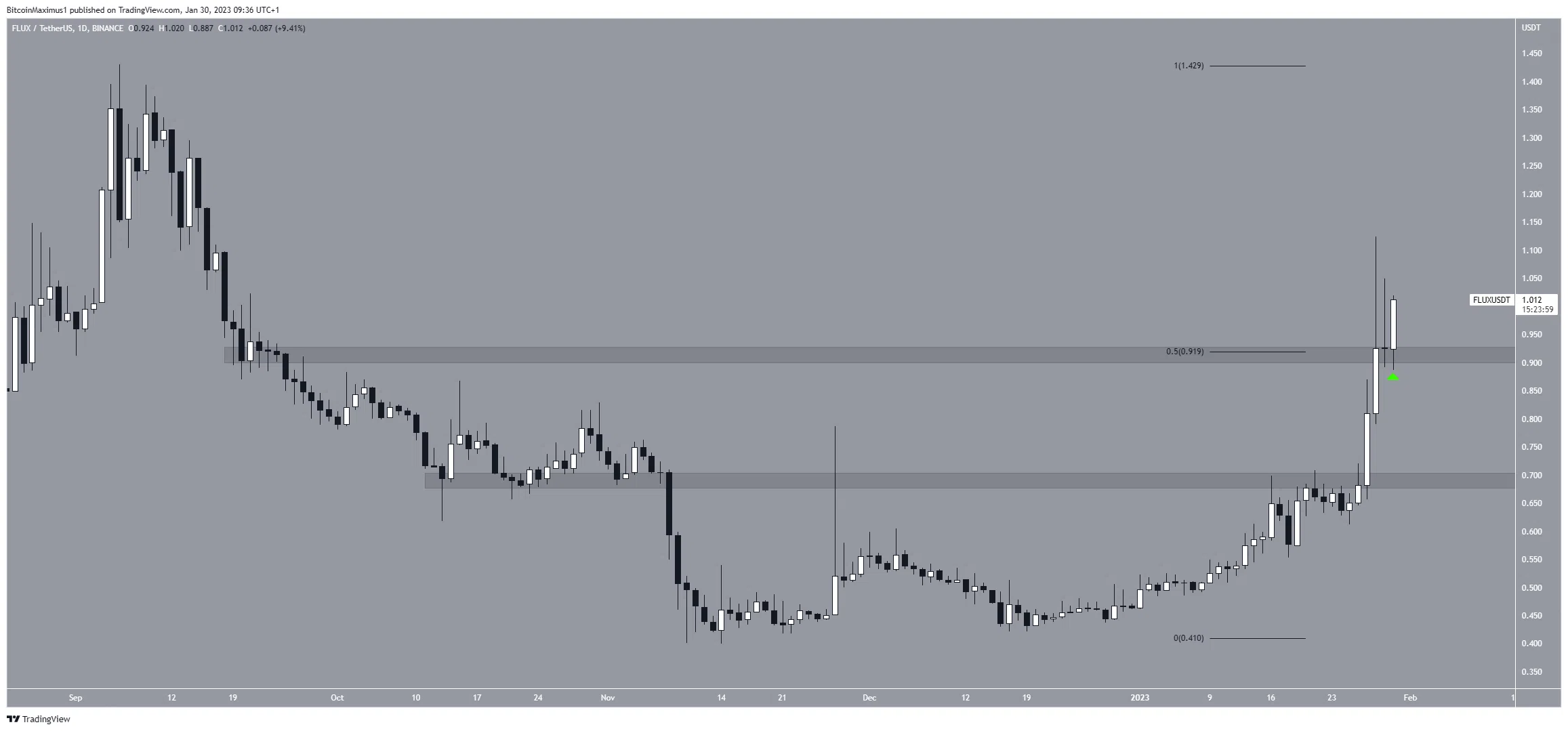 Giá FLUX đã di chuyển trên vùng kháng cự 0,92 USD và xác nhận nó là hỗ trợ vào ngày 30 tháng 1. Nếu mức tăng tiếp tục, mức kháng cự tiếp theo sẽ là 1,43 USD. Mặt khác, việc đóng cửa dưới khu vực 0,92 USD có thể dẫn đến việc giảm xuống 0,69 USD.