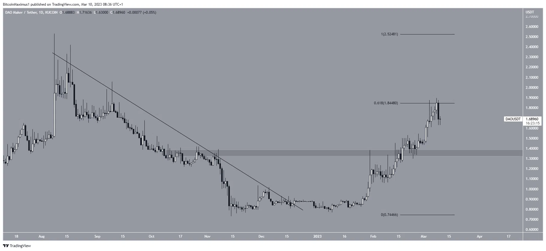 - Giá DAO Maker (DAO) tăng 6,80%