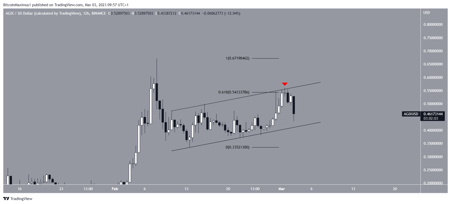 Tuy nhiên, nếu giá Ngưỡng bị phá vỡ từ mức hỗ trợ thoái lui Fib 0,618, nó có thể giảm xuống còn 0,023 USD.