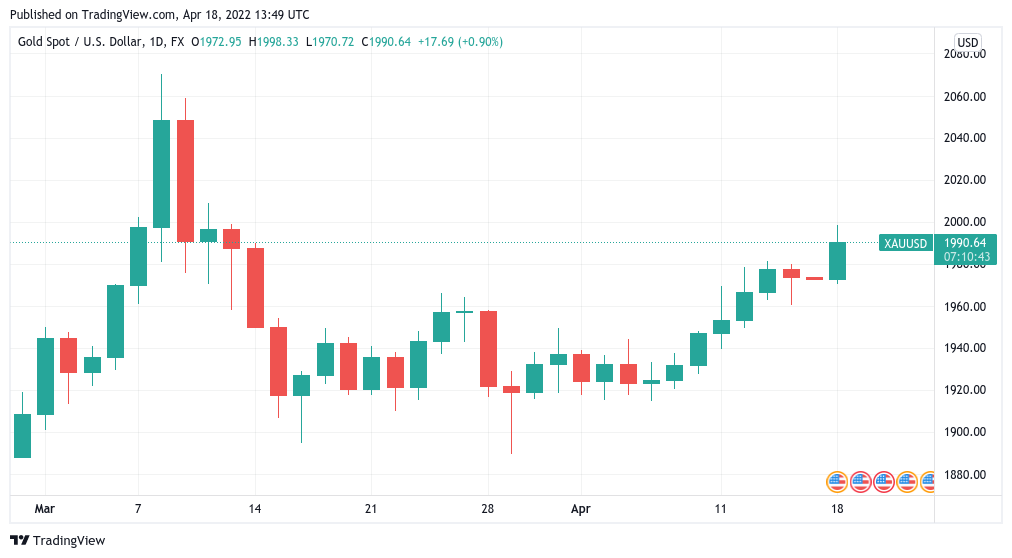 Mặc dù Bitcoin đang chịu áp lực, không có cảm giác đau đớn đối với vàng vào ngày 18 tháng 4.