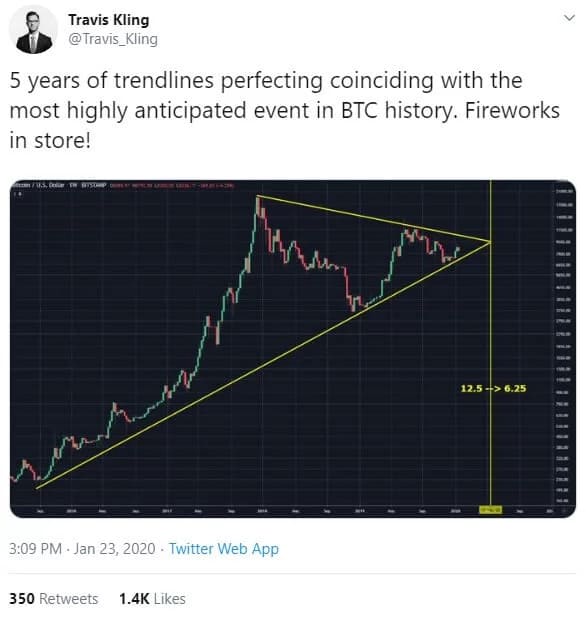Điều thú vị hơn nữa là sức đề kháng chéo và hỗ trợ đường chéo trông giống như chúng sẽ hội tụ vào tháng 5 năm 2020. Vào thời điểm đó, phần thưởng khối của bitcoin cho các thợ mỏ sẽ bị cắt giảm một nửa từ 12,5 BTC xuống 6,25 BTC. Việc giảm một nửa này là một trong những sự kiện tăng giá nhất trong lịch sử bitcoin vì nó làm giảm tỷ lệ lạm phát xuống 1,8%. Con số đó thấp hơn mục tiêu 2% của Cục Dự trữ Liên bang.